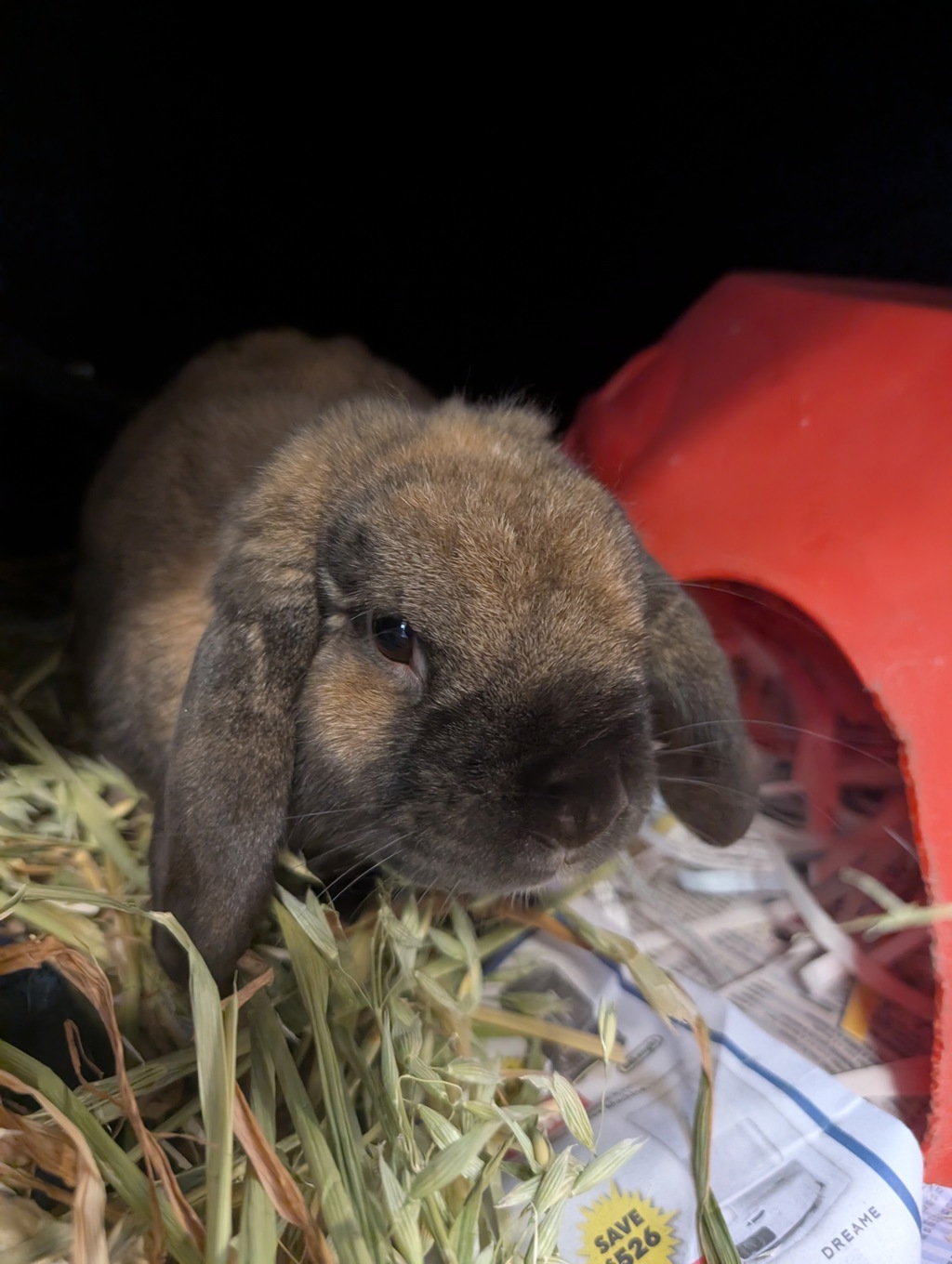 Angus is a handsome lop-eared bunny with floppy ears, a chilled-out vibe, and a heart as big as his curious eyes. He's the kind of bun who'll happily flop in a sunny patch of floor, nibble on fresh hay, and keep an eye on what you're up to-just in case there's a treat involved.