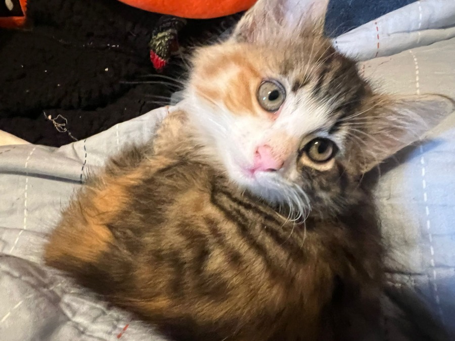 Say hello to Rosie, the gentle soul of her family and a sweet kitten waiting for a calm home just like her. Rosie is a shy and reserved little girl, often the last to explore new things, but she is always the first to find the coziest, sunniest spot for a long, peaceful nap.