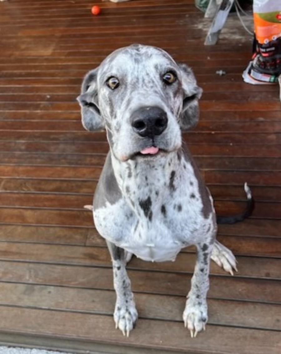 Like any dog I know, I love my person to be home, but I can cope with workdays on my own. I’m in super shape for what some may call mature aged, in fact I don’t have any medical history at all! My sterilisation is 12th August, and I hope to be heading to my new home a week or two later after I’ve fully recovered. I like to think I can convert any dog lover to be specifically a Great Dane Lover.