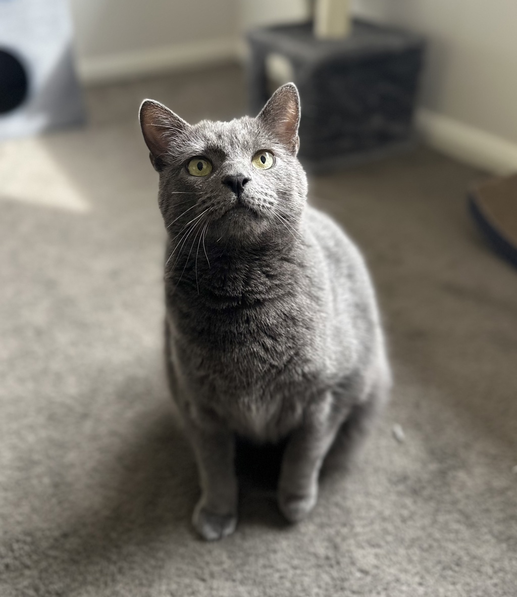Looking for a mature, grey gentleman with charm, size, and personality? Look no further than Smokey - our beautiful blue boy with a heart as full as his belly!