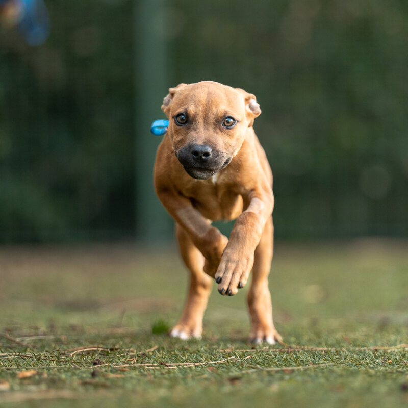 Hi there, my name is Snoppy! I'm a male American Staffordshire Terrier pup who's just 2 months old. I'm full of puppy energy and love - and I'm eager to find my forever home! I'm a social butterfly, getting along well with other dogs and I've no known issues with other pets or children. I'm just a little guy with a big heart, looking for someone who can provide me with daily opportunities to learn about life, explore the world, and grow into the best dog I can be. I'd fit best in a household with a moderate energy level, where someone works average work hours. I believe I'd make a brilliant addition to your family, offering you all the love, joy, and puppy kisses you could ever need. Are you ready to open your home and heart to a playful, loving pup like me? I promise, I'll repay you with a lifetime of loyalty, love, and fun.