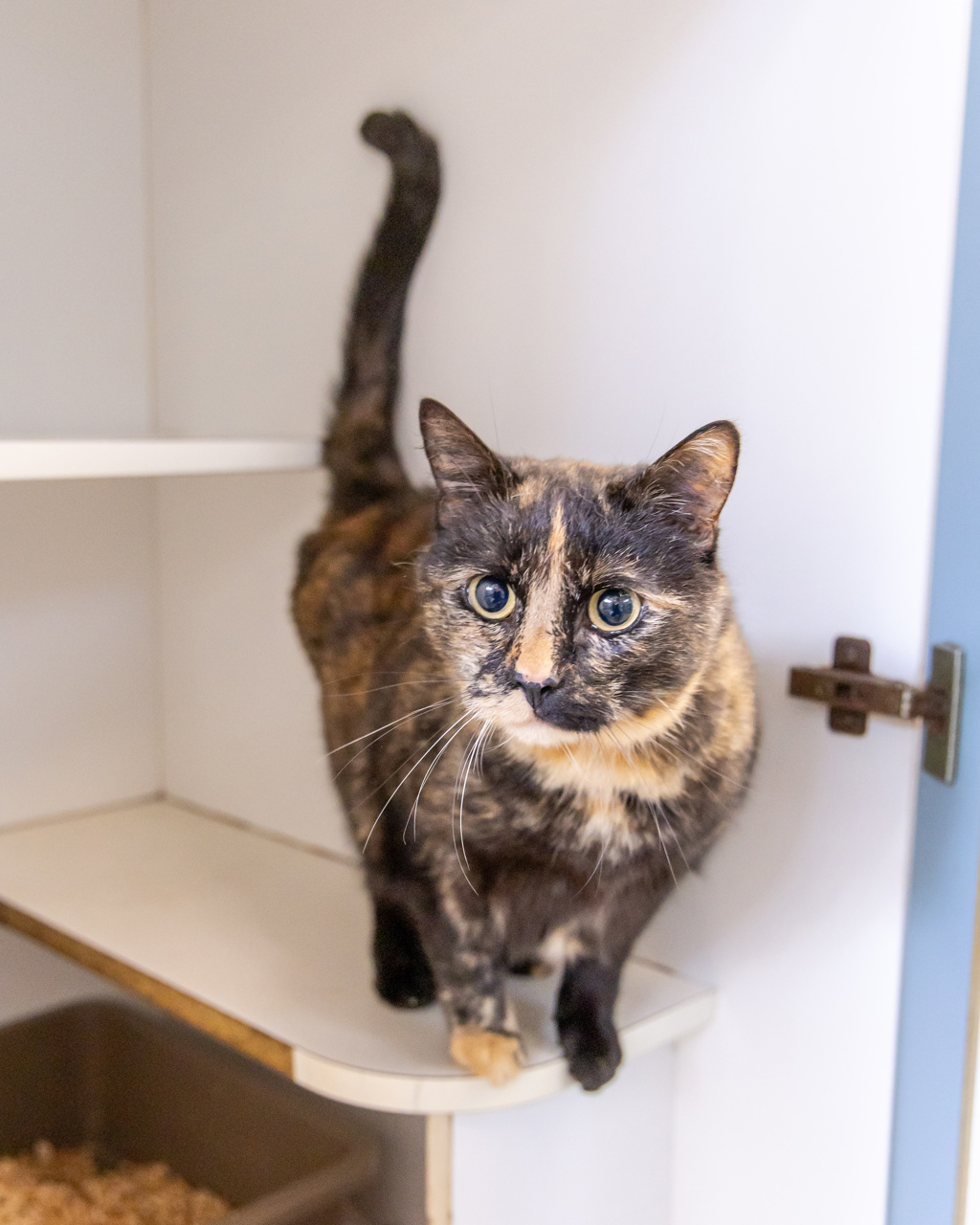She's previously lived with children and would be well-suited to most households, including those with respectful little ones. While she hasn't lived with other cats before, Shelby may be able to share her home with a quiet, calm feline friend-given a slow and thoughtful introduction.