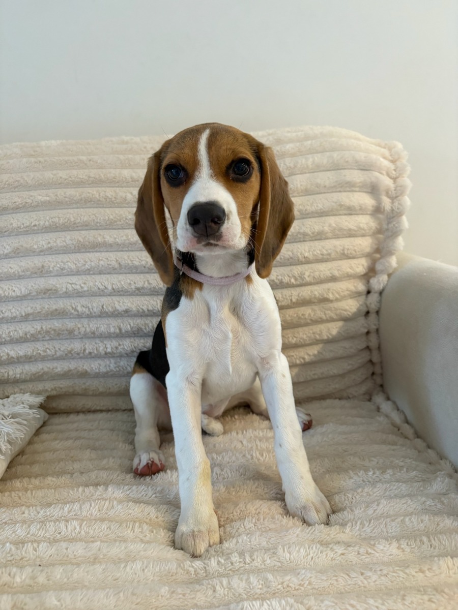 Sadie is a 4 month old beagle girl. She is housetrained if she has access to outdoors. She has learned a couple of simple commands so far, but eager to learn more. Sadie has lived with cats so with careful introduction, she will be ok. Sadie is happy to amuse herself with toys, zoomies in the yard and Kong toys filled with food or treats, but loves to be involved with her human and included in outings, as she happily travels in the car.