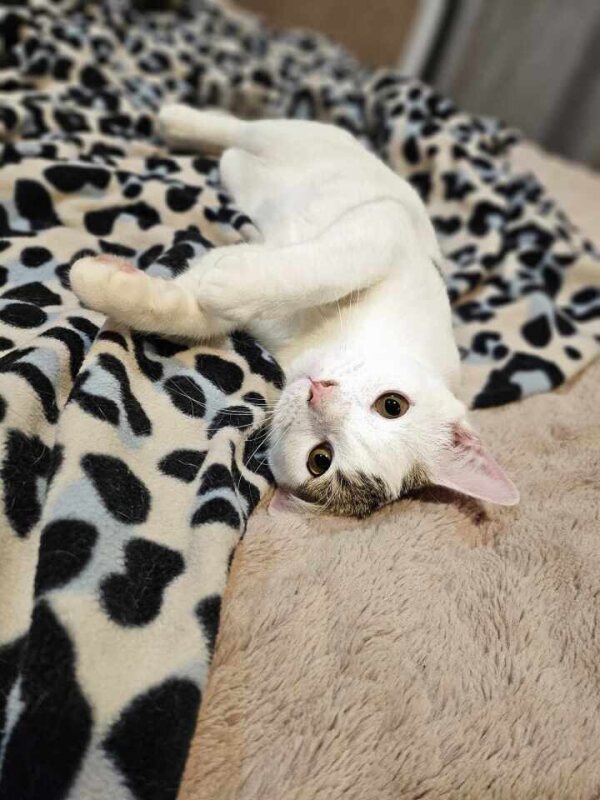 I’m also a big-time snuggler. Whether you’re on the couch, in bed, or just standing still for too long, I’ll be right there asking for a cuddle, a pat, or maybe just staring lovingly into your eyes. I’ve been living with some awesome foster siblings (feline ones, that is), and I’ve loved every minute of it — wrestling, grooming, chasing tails… you name it. I’d be over the moon to join a home with another friendly cat to play with, but I’d also be happy as your one-and-only if you’ve got plenty of love to spare.