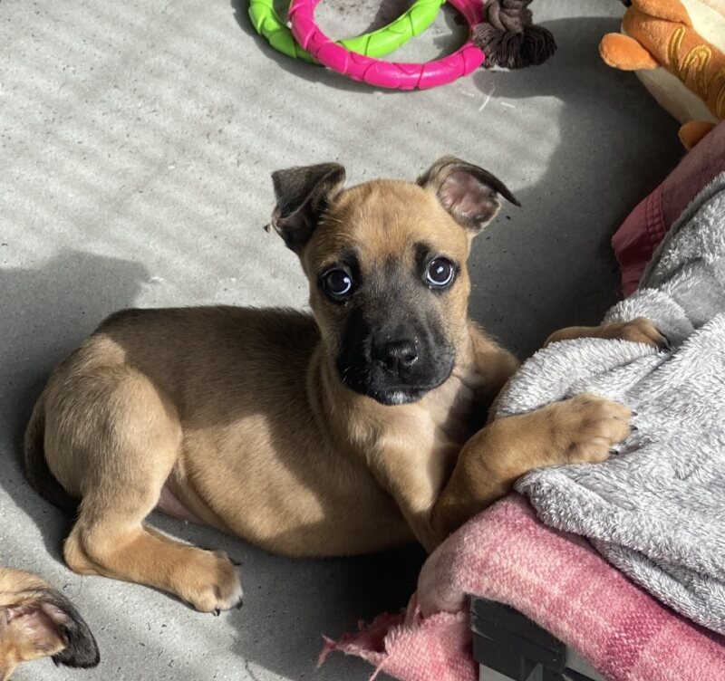 Hi, I’m Harper I’m a bright-eyed boxer pup with a big heart and an even bigger sense of fun. I love playing with my siblings, hanging out with the big black dog I live with, and saying hello to the ducks (yes, ducks). People are my favourite though, especially kids. I’m curious, gentle, and always ready for a cuddle or a game. Life is pretty exciting and I can’t wait to explore it all with my forever family. If you’re looking for a loyal, playful best friend, I might just be your girl.