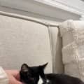 Oreo is curious, enjoys pats and sleeps in bed with carer.