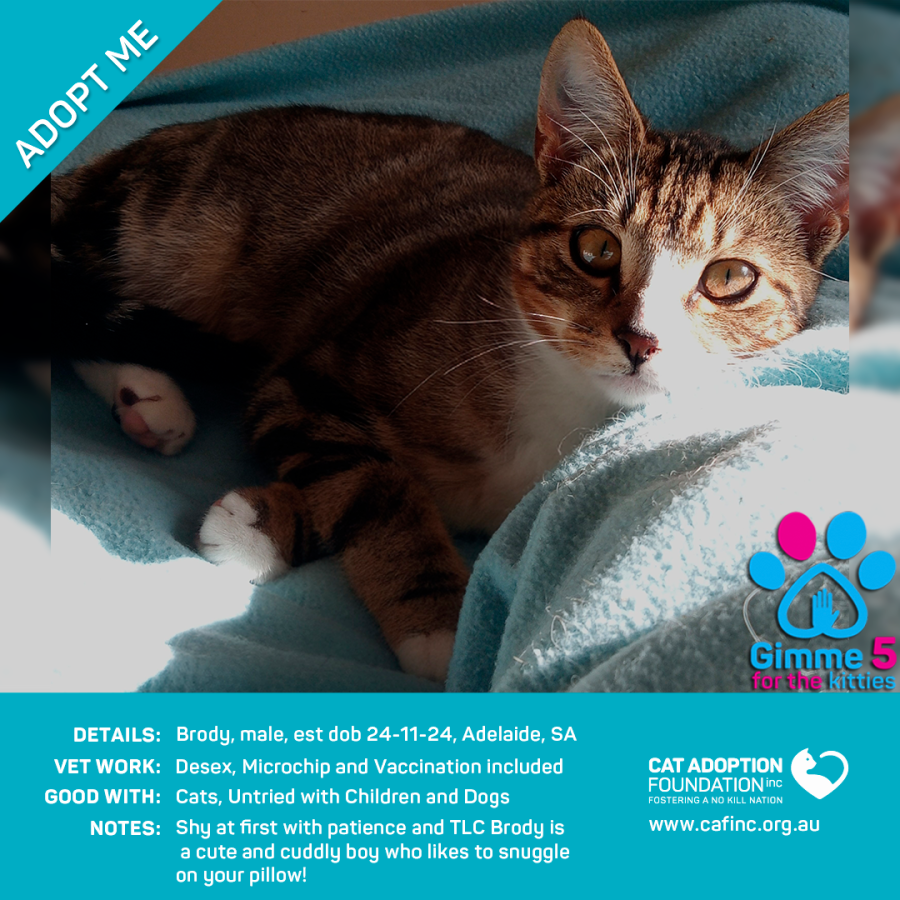 Donate to Brody Just $100 Limited Time! at Cat Adoption Foundation Incorporated via Shout