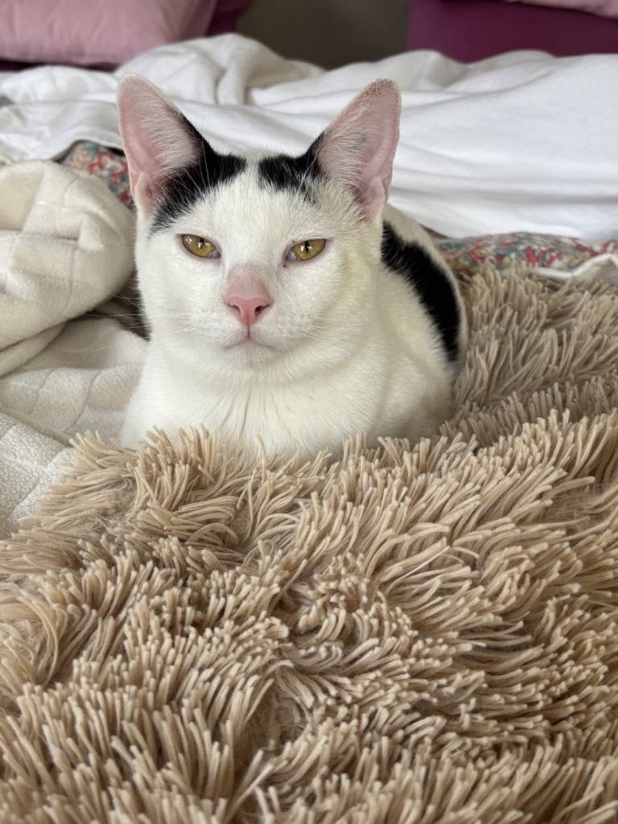While I'm quite good at amusing myself with toys, I'm also a social butterfly. I currently live happily with other cats and even an old dog—whose bed I sometimes share, because, well, it's just as comfy as mine! I'd absolutely love to find a new home with my brother Cardamom or another feline friend of a similar age. We could keep each other company and share all the best napping spots.