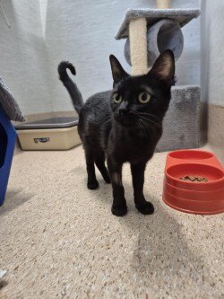 I’m a 1 and a half year-old Domestic Shorthair with a silky black coat and big curious eyes.