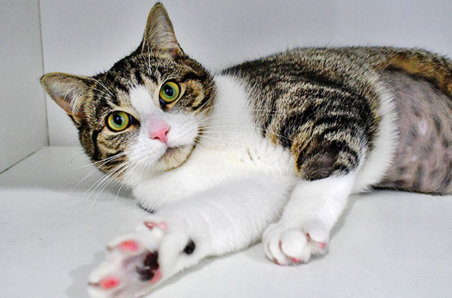 Daisy is open to meet kids from 8 years and up. Reason for this is that sometimes she may at times be a little shy when you first meet her and she may need her space until she builds up her confidence. Once she is confident, she is very affectionate and is fine to be picked up, carried and cuddled and adores any and all attention. She loves to be patted and touched - she enjoys cheek scratches and she will purr and head bunt in to your hand for more. She'll flirtatiously roll around in front of you, begging for your love and affection.