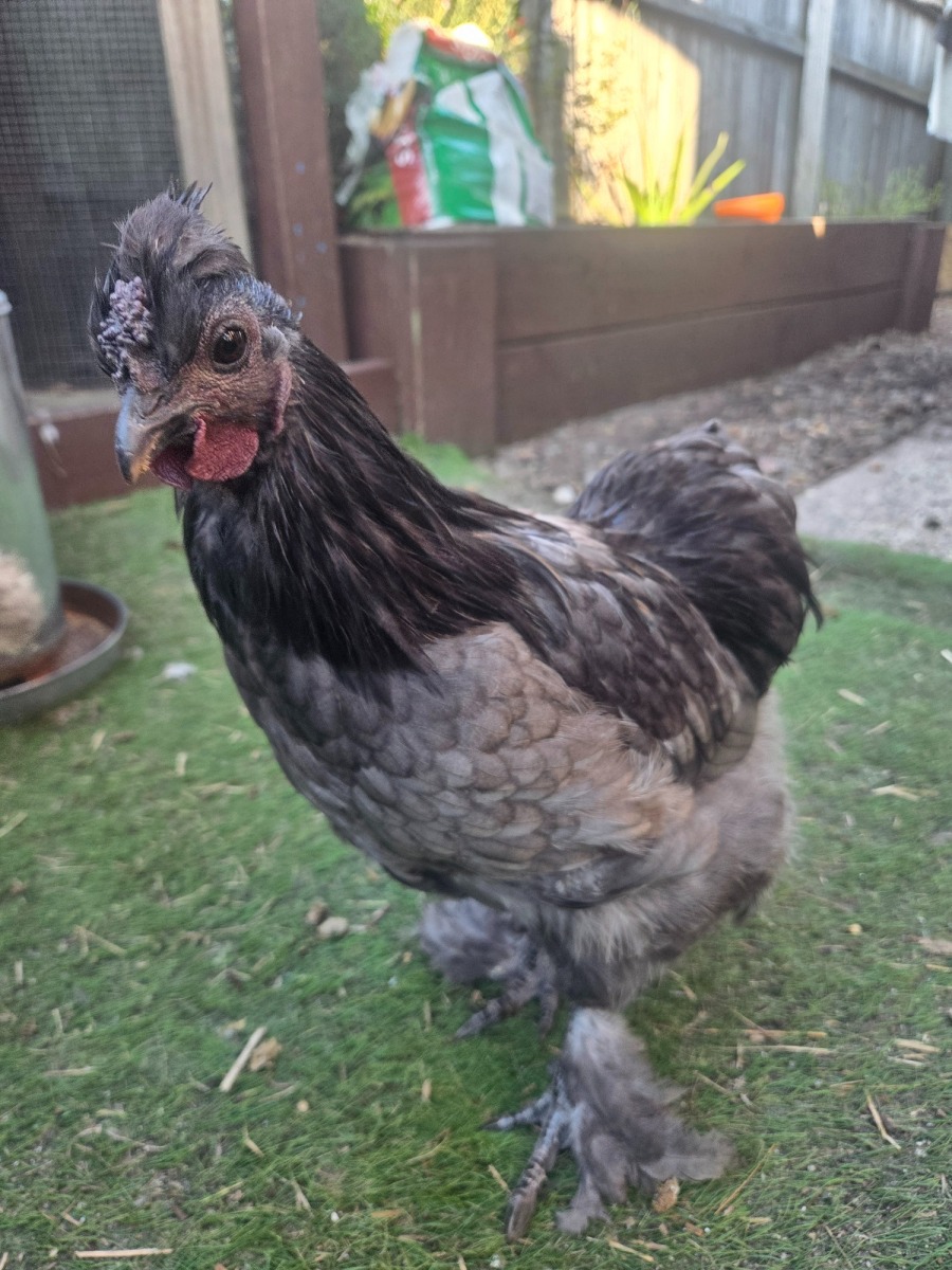 Say hello to Charcoal, the cutest and most charming Silkie rooster you'll ever meet. Lovingly raised since he was a chick, Charcoal is accustomed to human interaction, and he's always eager to strut his stuff for the people he knows and loves.