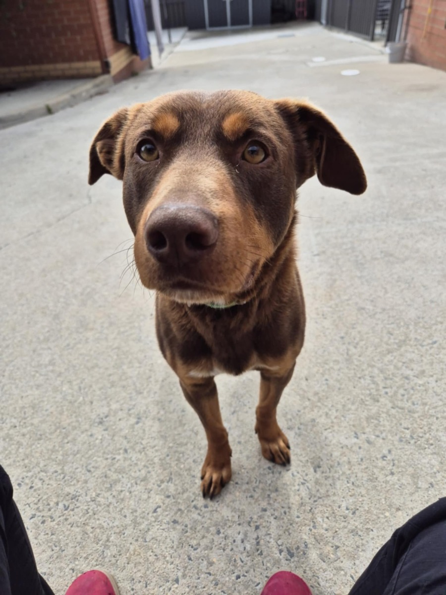 Looking for a loyal sidekick with brains, energy, and a whole lot of love to give? Jerry is ready to shoot straight into your heart. This 1-year-old chocolate Kelpie is shy at first but when he warms this soft soul will be your most loyal mate. With his expressive eyes and fun energy, Jerry is as handsome as he is intelligent — and he’s got the personality to match.