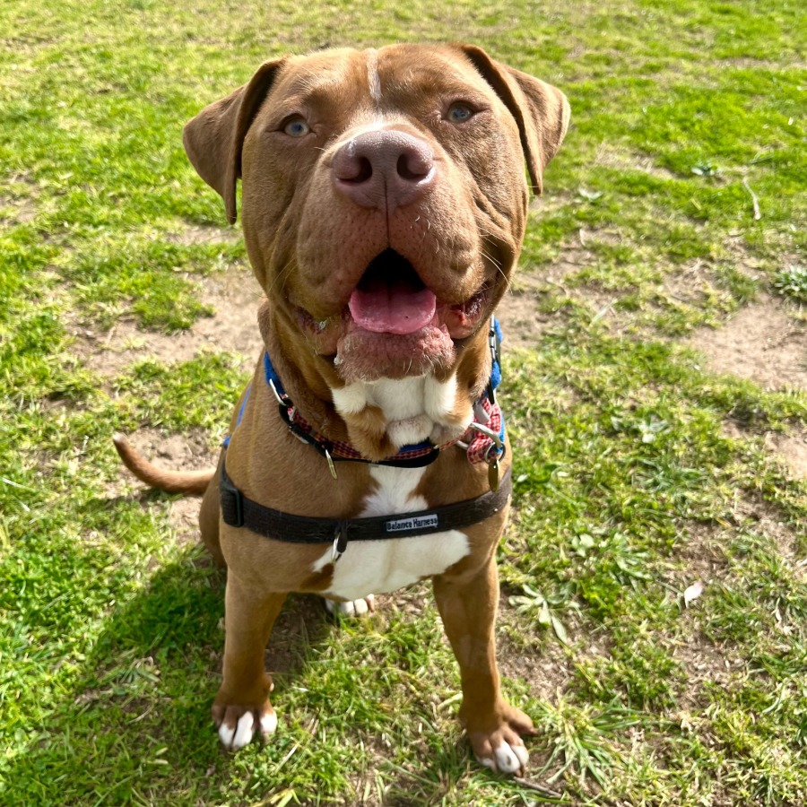 Koda is a stunning American Staffordshire x who’s already been through more than his fair share — but you’d never know it by his happy-go-lucky personality. He came into our care after being surrendered with a badly broken leg. Despite every effort to save it, the injury was too severe. But in true Staffy fashion, Koda has bounced back stronger than ever, full of tail wags, toys, and affection.