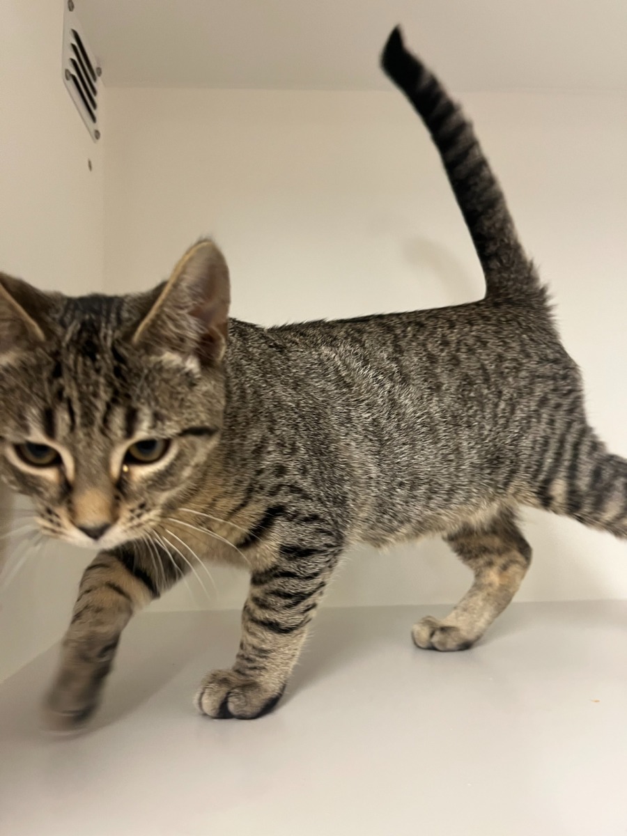 Meet Stewart, a delightful kitten brimming with fun and adventure! This adorable little furball has an irresistible charm that will undoubtedly capture your heart. With boundless energy and a zest for exploring the world around him, Stewart is always ready to embark on new adventures and discover the wonders of his surroundings.