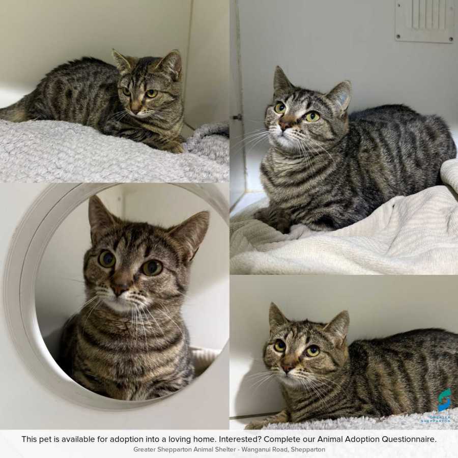 Say hello to Mia, a sweet and gentle 10-month-old tabby with the softest fur and the kindest heart. With her warm eyes and adorable stripes, she’ll steal your heart the moment you meet her.