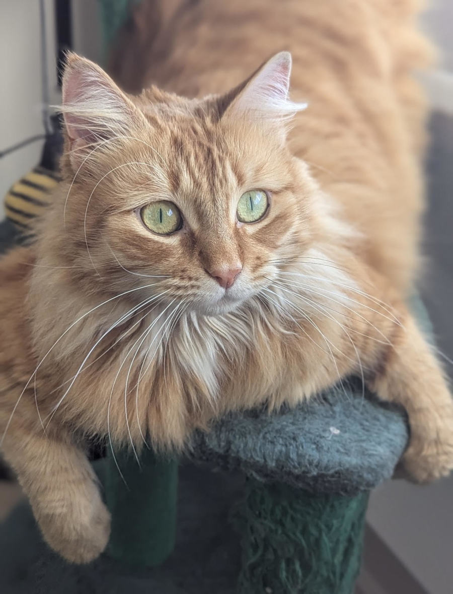 This beautiful fluffy ginger cat is as sweet as her name suggests. Honey is a gentle soul who adores attention, cuddles, and kisses. She loves being close to her humans—whether that’s curling up next to you on the couch, sitting at your feet while you work, or following you from room to room just to be near you.