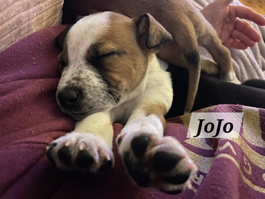 This sweet, doe-eyed girl is JoJo, a border collie cross, affectionately known as Joey, as she likes to hop like a baby kangaroo.