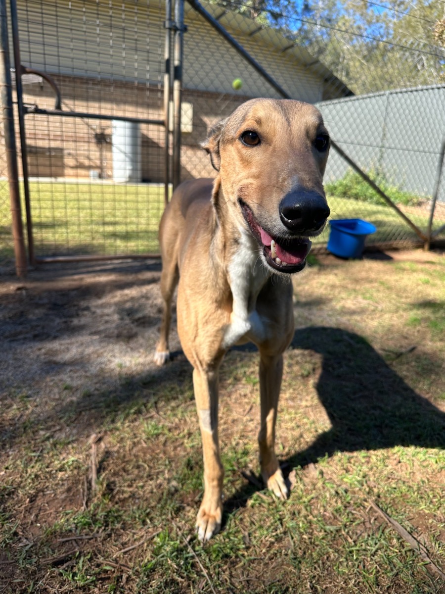 BEAR came to the shelter as a microchipped stray and was unfortunately never reclaimed. Since BEAR has come to us he has been an absolute treat to care for, he is a calm boy with an amazing nature. BEAR is a masculine boy and an ex-racer and you can definitely tell this by looking at him however his energy levels would say different as he is quite the couch potato. BEAR always keeps his kennel clean and lets you know when he needs to do his business. BEAR'S relaxed temperament makes him suitable for most homes.