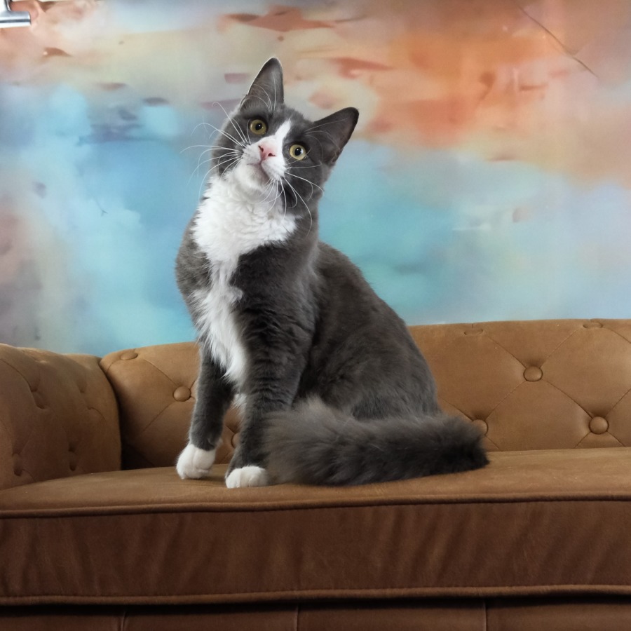 Introducing Finn - a blue-and-white bundle of chaos, charm, and cheeky cat-itude! This short-haired stunner is a whirlwind of fun, zoomies, and purrs, always ready to turn your living room into his personal playground. Equal parts mischief-maker and cuddle bug, Finn brings the party wherever he goes - and yes, that includes your lap, your couch, and probably your laundry basket too.