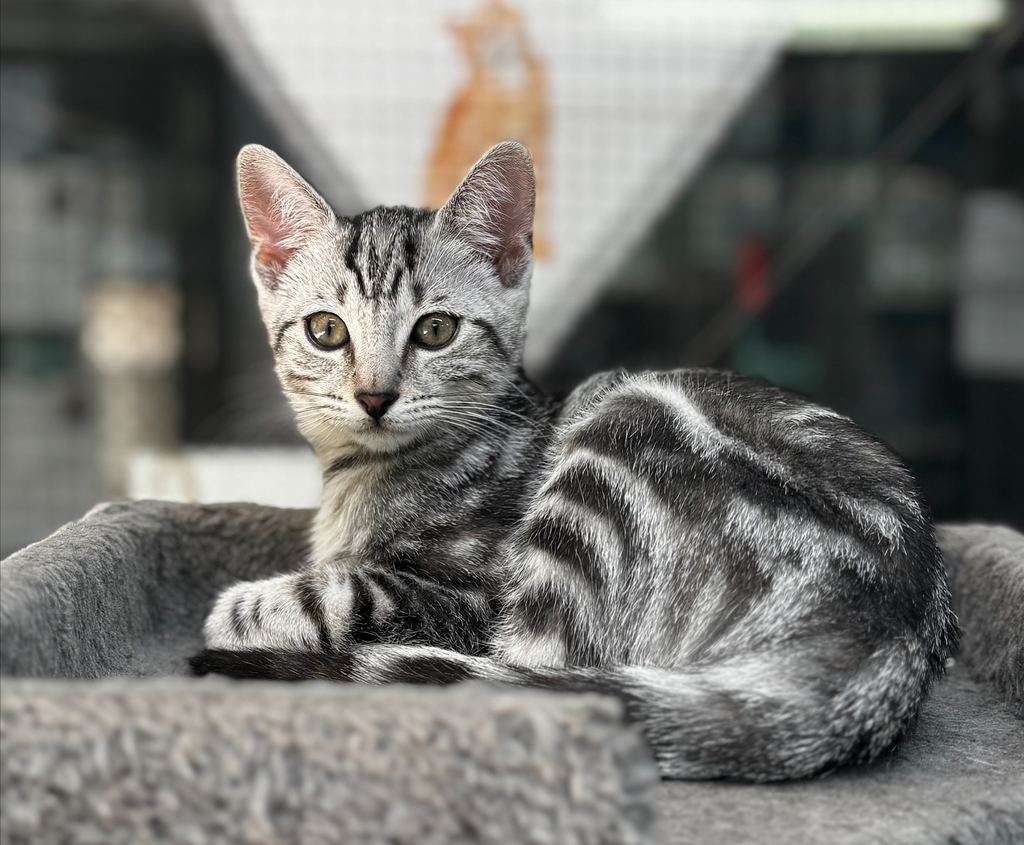 a playful and friendly kitten who loves to make new friends and go crazy with my siblings. My days are filled with fun as I chase toys and explore every corner with curiosity. I adore cuddles and will purr happily when you're nearby. I'm looking for a forever home where I can share all my love and playful antics. If you're looking for a sweet companion to bring joy and laughter to your home, I'm the perfect match!