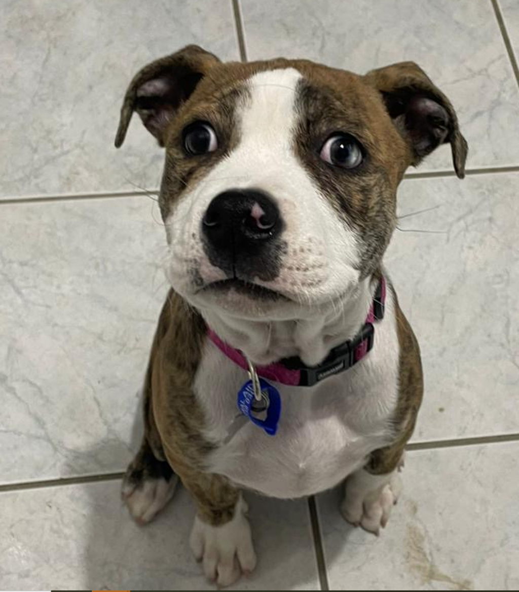 Maya is a bold, bright-eyed American Bulldog pup bursting with personality and confidence! At just 10 weeks old, she's already showing the world she's not afraid of much - whether it's exploring new places, meeting new friends, or diving headfirst into playtime.