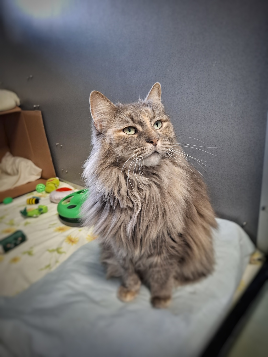 Because of my beautiful long fur, I'll need someone with long-haired cat experience who understands the importance of regular grooming. I don't mind being brushed-especially if it's part of our bonding time!