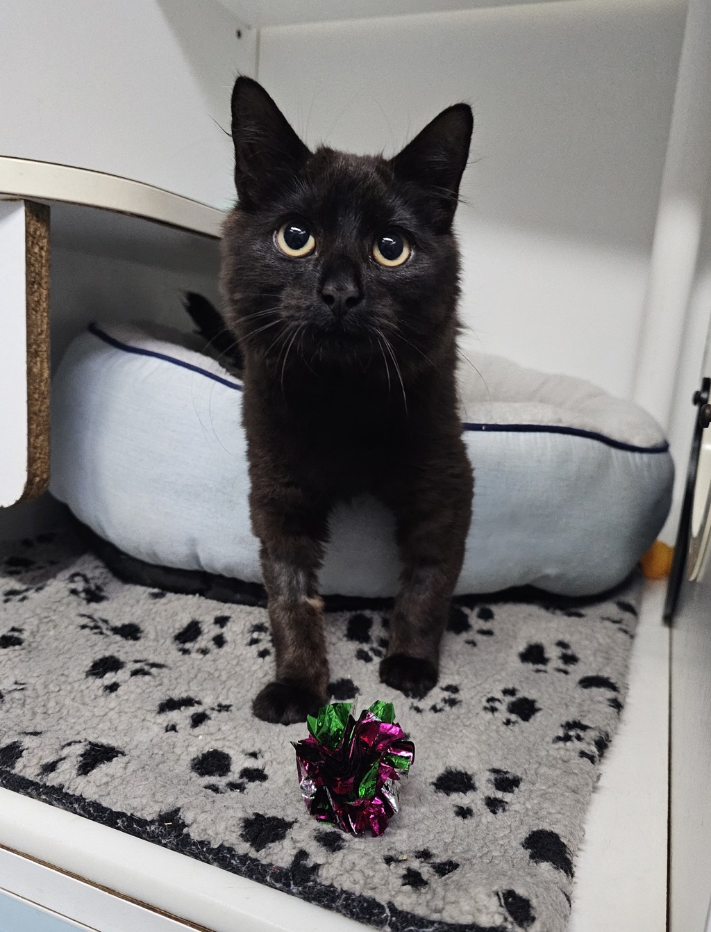 If you've been dreaming of a pint-sized panther with the heart of a snugglebug, say hello to Pingu! This sweet and playful fluffball is a black kitten with a coat as soft as clouds and eyes full of curiosity.