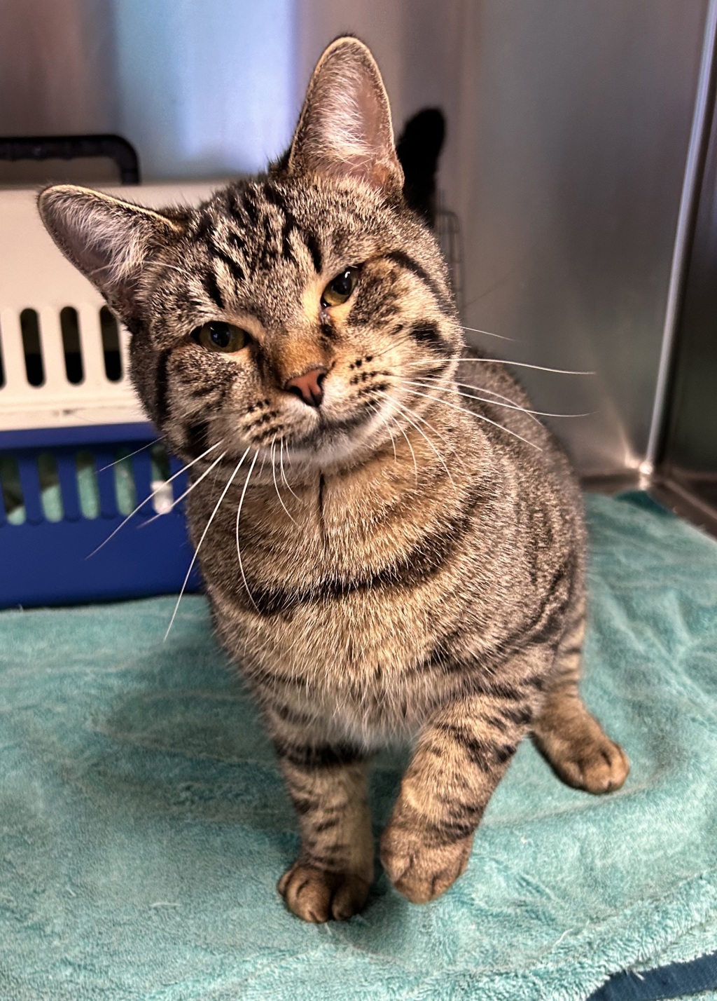 Say hello to Samuel, a gentle and loving 10-month-old tabby who's full of sweetness and affection. Samuel enjoys cuddles and being close to his humans, making him a wonderful companion for anyone looking for a friendly and devoted feline friend.