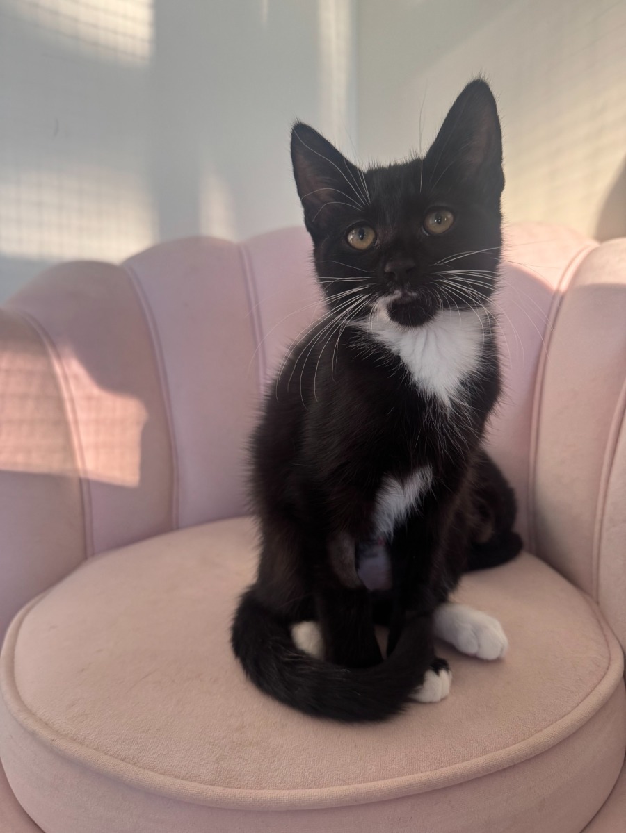 Vonnie is a 13-week-old tuxedo troublemaker with a sparkle in her eye & a soft spot for snuggles. She’s affectionate, bold & just a little bit cheeky - especially when it comes to ambushing your feet from under the couch!