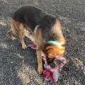 Aurum is house trained and voice responsive and is an energetic boy. He has a high toy drive and loves to retrieve and play tug o war. Since being with his foster carer, Aurum has been taught to be social around other male and female German Shepherds.