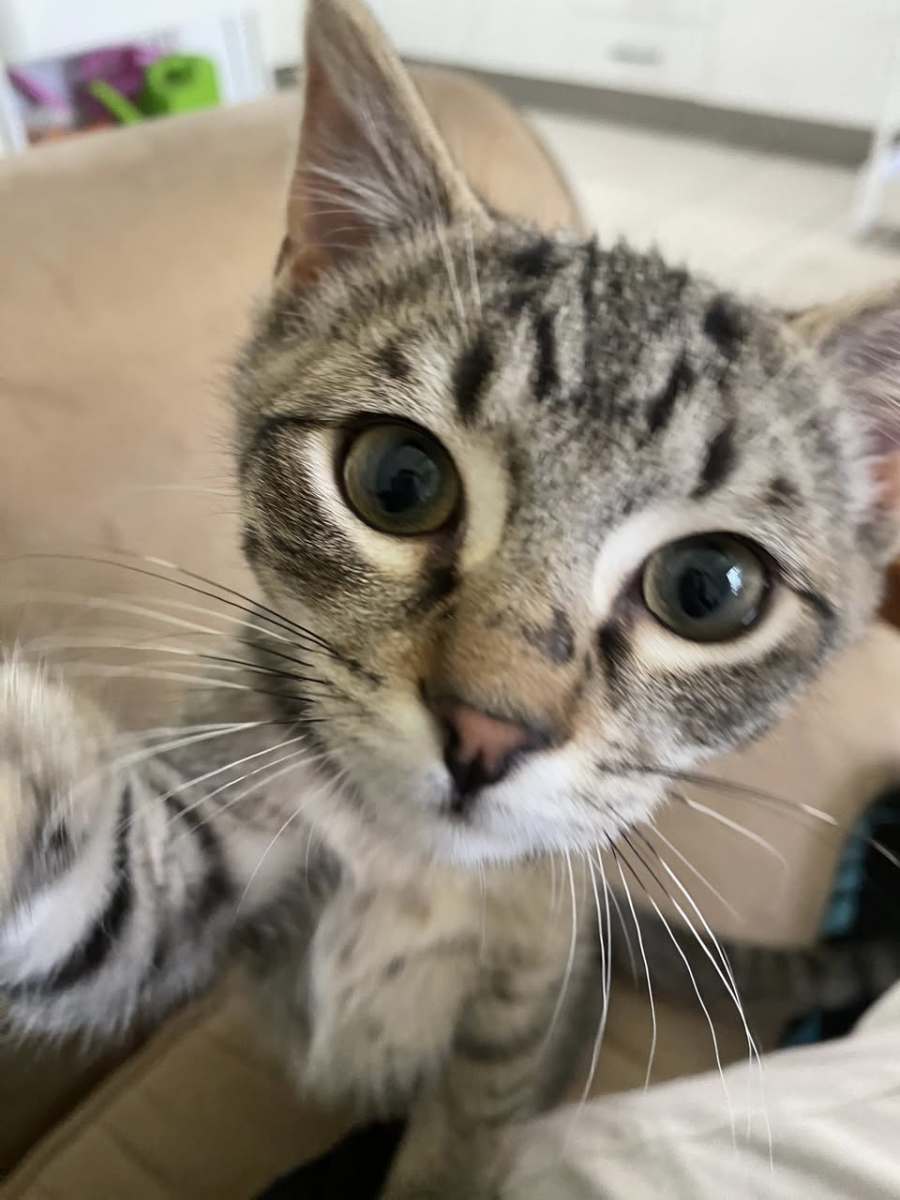 My favourite game is running around like a maniac—I’m still deciding on my favourite toy. My litter box manners are perfect (no accidents here!), and I don’t really have any behavioural issues, except I do get a little bit of separation anxiety sometimes.