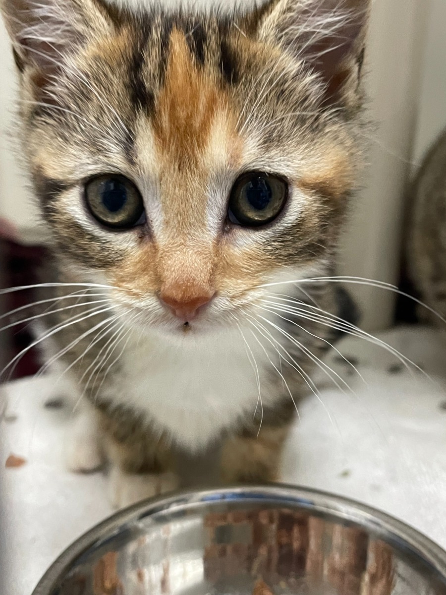 Lollipop is a little ray of sunshine. She’s always purring, whether she’s chasing a toy mouse or curled up for a nap. This sweetheart is the perfect companion for anyone looking for a playful and affectionate kitten. She’s full of love and ready to share it with her forever family.