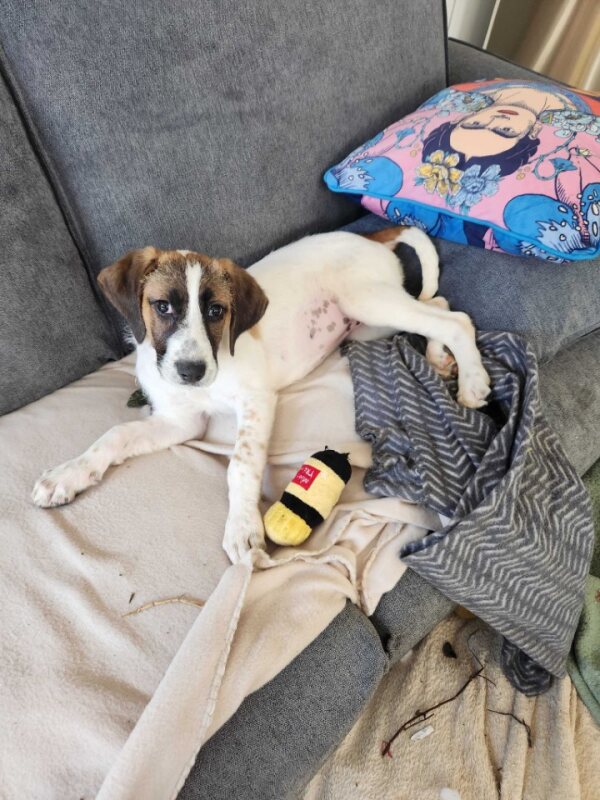 At just 3 months old, I’m learning all about the world — and I’d love to do it by your side! I’m playful, gentle, and oh-so-snuggly. I adore other dogs and would be thrilled to have a furry sibling to romp around with! 🐶 Sadly, I’m not a fan of cats, so a cat-free home is best for me. I haven’t met many kids yet, but I’m open to making new little friends and growing up with them! Because I’m still so young, I’d really benefit from having someone home most of the time. I’m working on feeling brave when I’m alone, but for now, having company helps me feel safe and secure