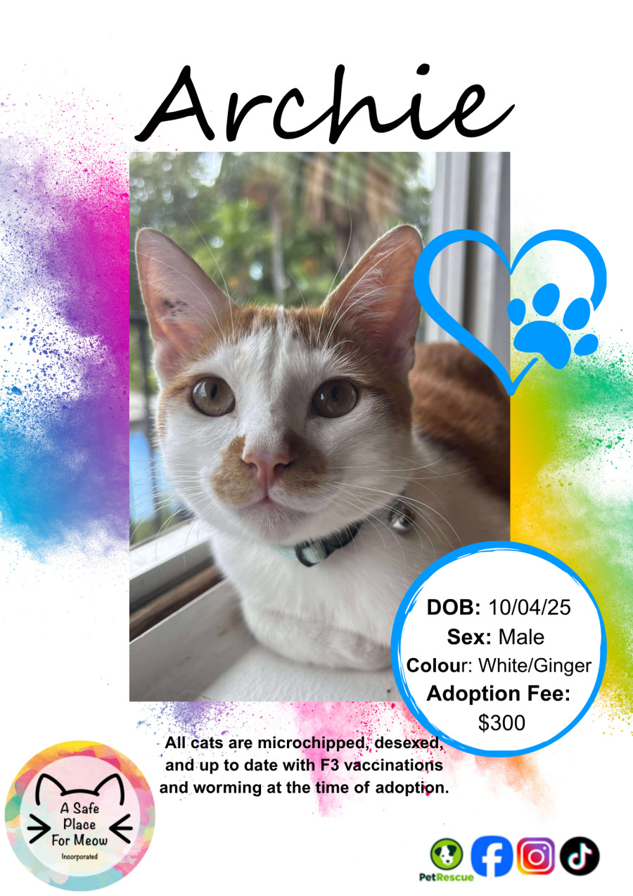If you're seeking a beautiful and loyal companion who offers endless cuddles and brings genuine warmth into your home, Archie is ready to meet you. His affectionate nature and love for everyone make him the ideal addition to any family, ready to share his heart with those around him.
