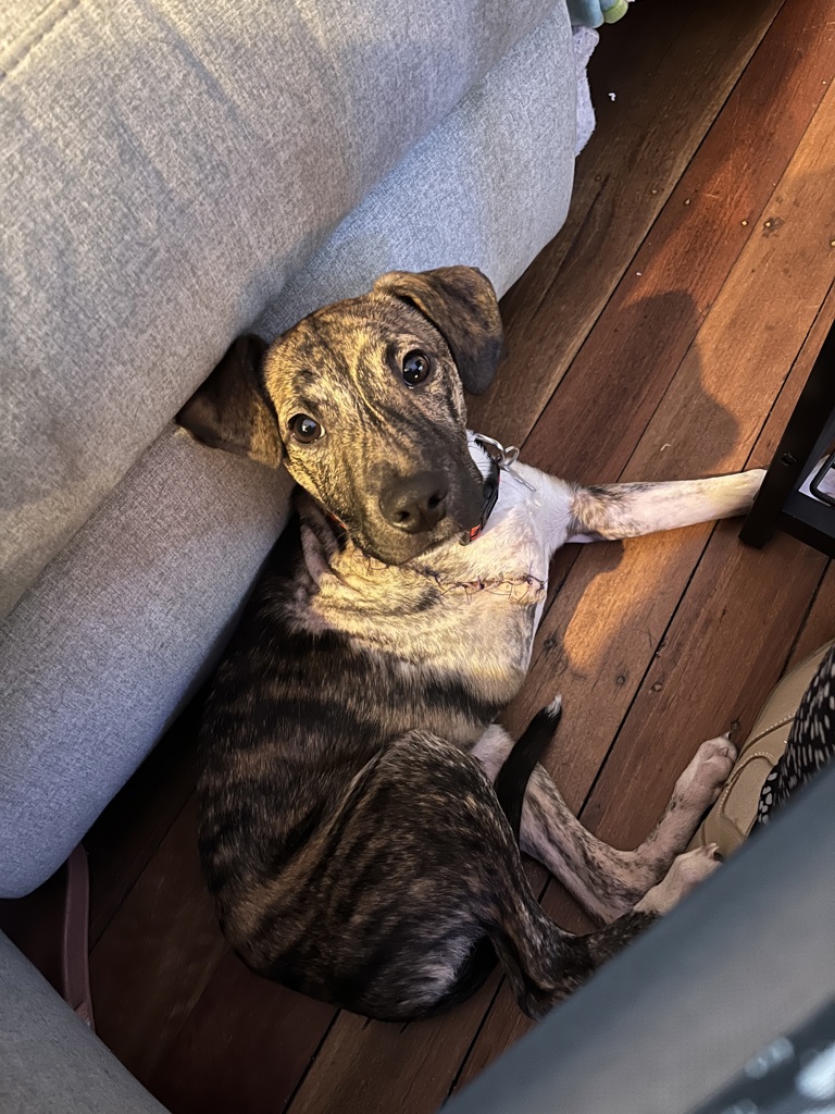Herb is incredibly affectionate and seeks out closeness and comfort. He loves being cradled like a baby, is relaxed in the car, and happily follows his foster carers around as they go about their day.His favourite things include meeting new people, chasing a ball, and simply being near his humans.