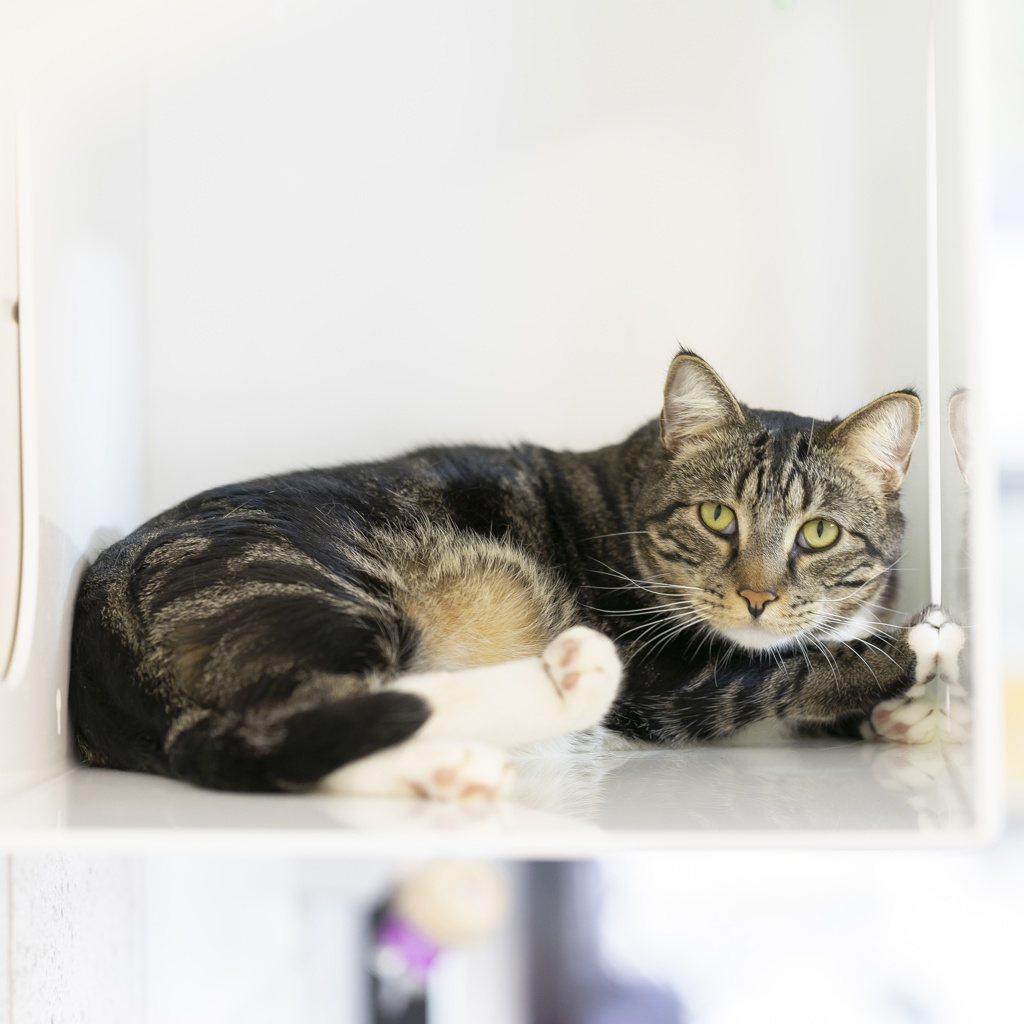 Leo is a big, lovable boy with a soft heart and a soft meow to match. While he might be a bit shy when you first meet him, give him a little time and he'll warm up into a sweet, talkative companion who loves to chat about his day.