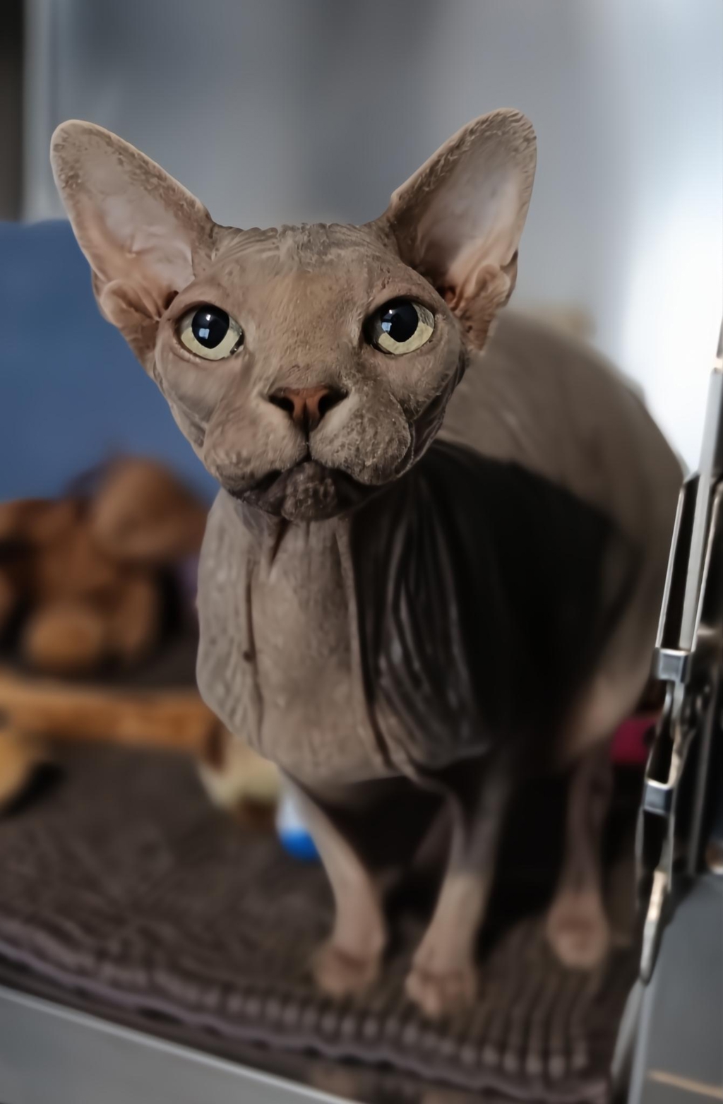 Introducing Luna, a beautiful, affectionate female Sphynx cat who is ready to steal your heart! This charming girl, known for her naturally hairless coat and warm personality, loves nothing more than cuddling up beside her human. Luna thrives on companionship and is accustomed to the joys of sharing a bed at night, ensuring that you'll never feel alone. With her playful spirit and gentle demeanor, she makes the perfect addition to any loving home, especially for those who appreciate the unique qualities of a Sphynx.