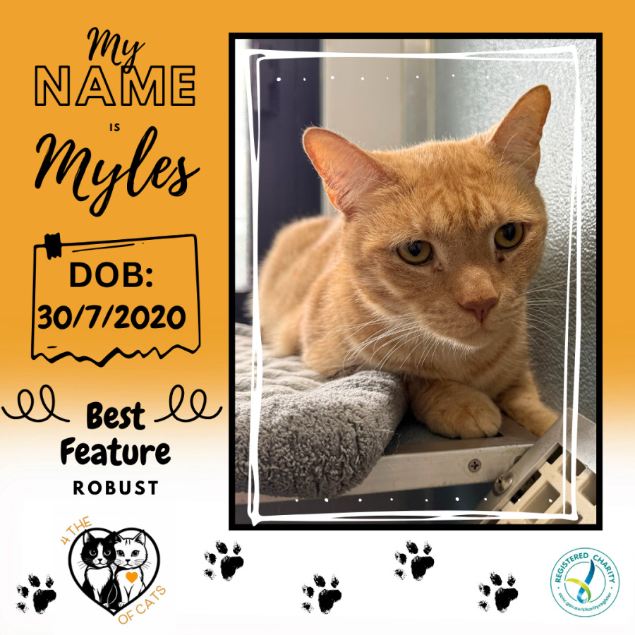 Myles would also be a good worker on a farm or in a shed keeping rats at bay.