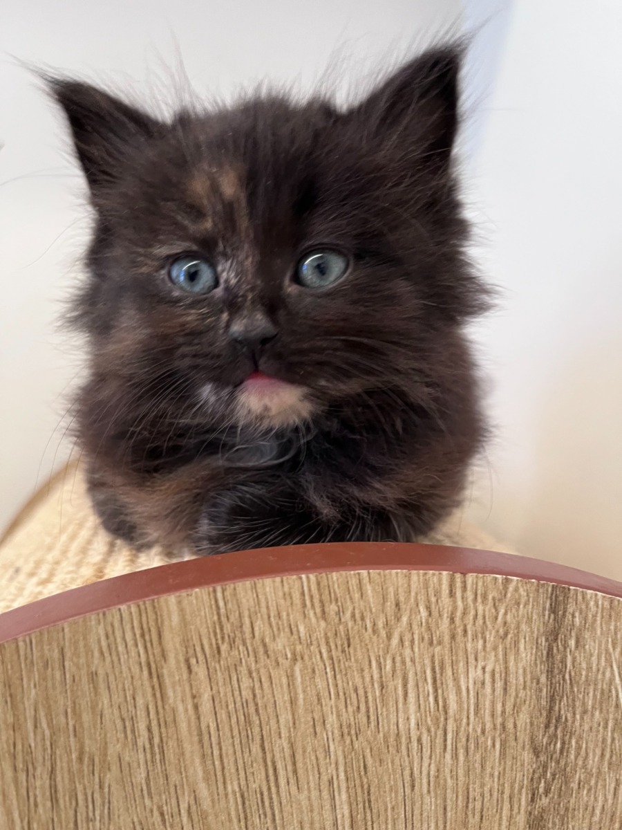 Say hello to Gemma, a beautiful tortoiseshell kitten with a dainty white chin that makes her look like she’s always smiling! Full of curiosity and gentle charm, Gemma is as affectionate as she is adorable.