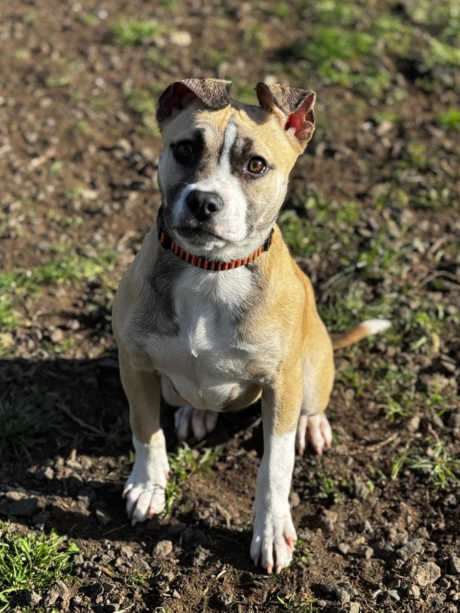 Zuri is an adorable pint sized staffy mix who was a stray that no one came looking for, she is now looking for a committed and stable home to call her own for life. Zuri will need back to basics training including but not limited to leash training, house training, obedience whilst upkeeping her social skills. Zuri has proved to be extremely handler focused and relies heavily on positive reinforcement leaving her a very willing to learn young girl. Zuri also adores cuddles at the end of her sessions. She has not been tested with cats, may suit living with children if they are respectful and would loved a matured male dog in the home to show her the ropes of life. If you looking for a snuggle bug and smart girl looking for a fresh start then look no further than sweet Zuri.