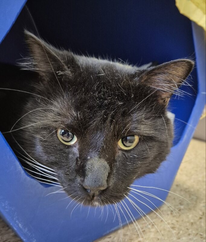 My name is Denis. I’m a 3-year-old black and white DSH gentleman with a quiet soul and a big heart. I can be a little shy at first, but once I feel safe, I’ll show you just how loving I can be. I’m a big fan of head bunts—they’re my special way of saying “I trust you.”