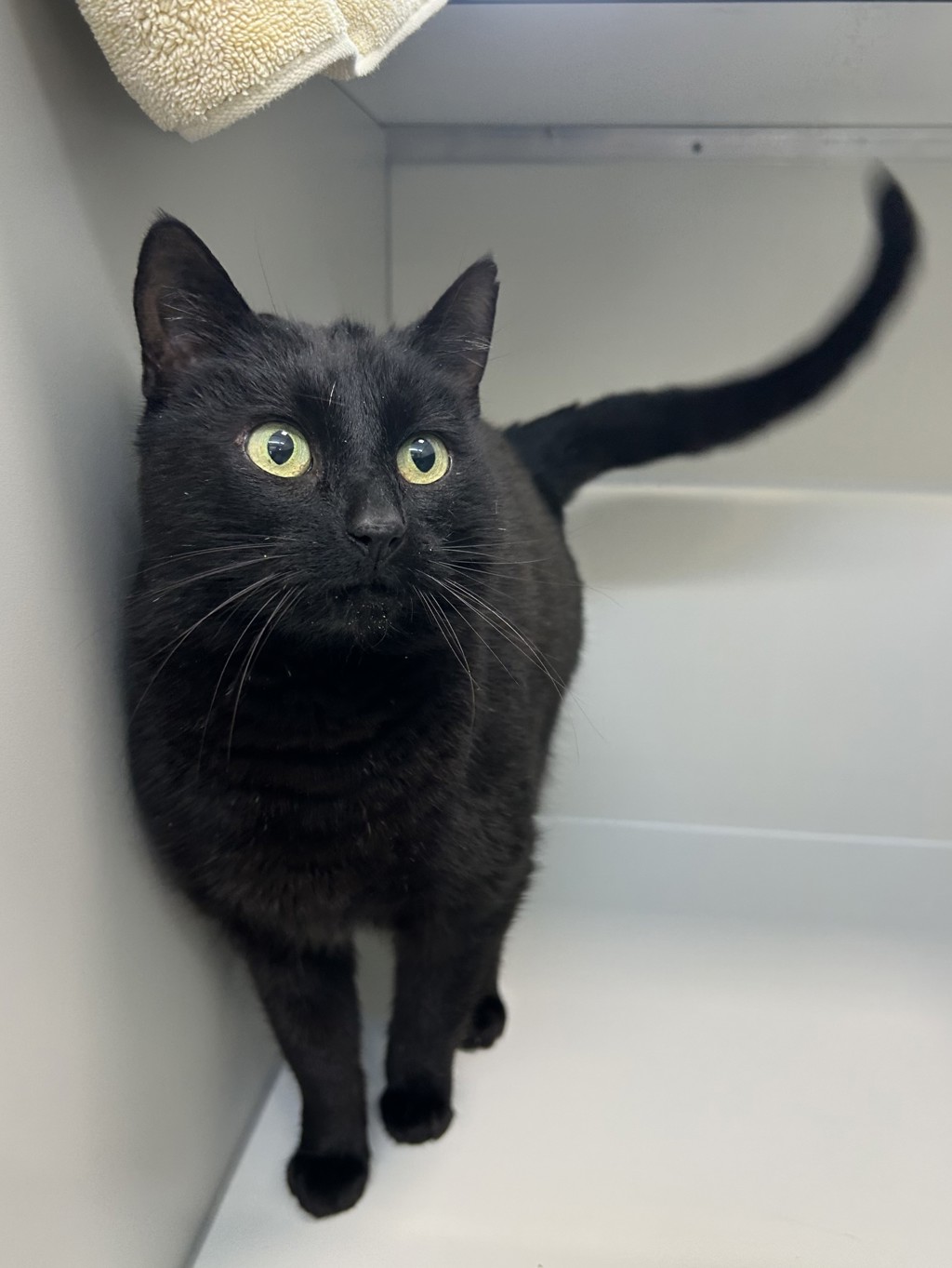 Stan is a handsome black cat who is shy at first but very smoochy once he gets to know you. He is looking for a patient owner who will give him time to settle in and show his true personality.