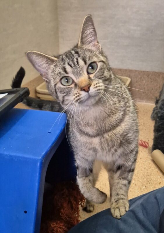 I’m Ruby, an 8-month-old female tabby with a big personality. I’m independent and love exploring my world, but once I’m warmed up to you, I’m super affectionate and full of smooches. I’m not shy about letting you know how I feel—I can be quite vocal! If you’re looking for a confident, loving kitty who will keep you company and chat with you, I’m your girl.