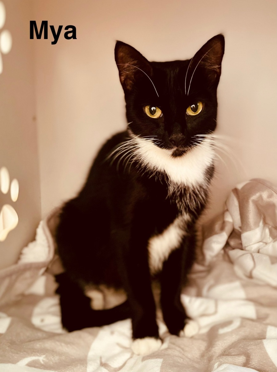 Meet Mya, a beautiful and elegant tuxedo cat with a heart full of love to give. This young lady is looking for a special new family to share her affection with. Mya’s grace and charm are complemented by her gentle demeanor, making her an irresistible companion. Imagine coming home to this strikingly beautiful feline, who is not just a sight to behold but a loving partner eager to be part of your everyday life.