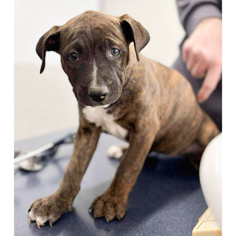 Noelle’s Mum is an English Staffy x Amstaff and her Dad is a Mastiff mix, a hybrid known as a "Staffy Mastiff". We expect her to be 35+ kgs at maturity.