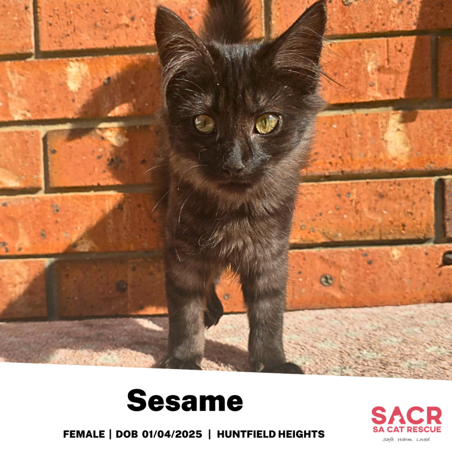 Meet Sesame, a beautiful black smoke kitten with a heart as soft as her fur. She’s one of the sweetest girls you’ll ever meet – a confident cuddlebug who knows what she wants and isn’t shy about asking for it.