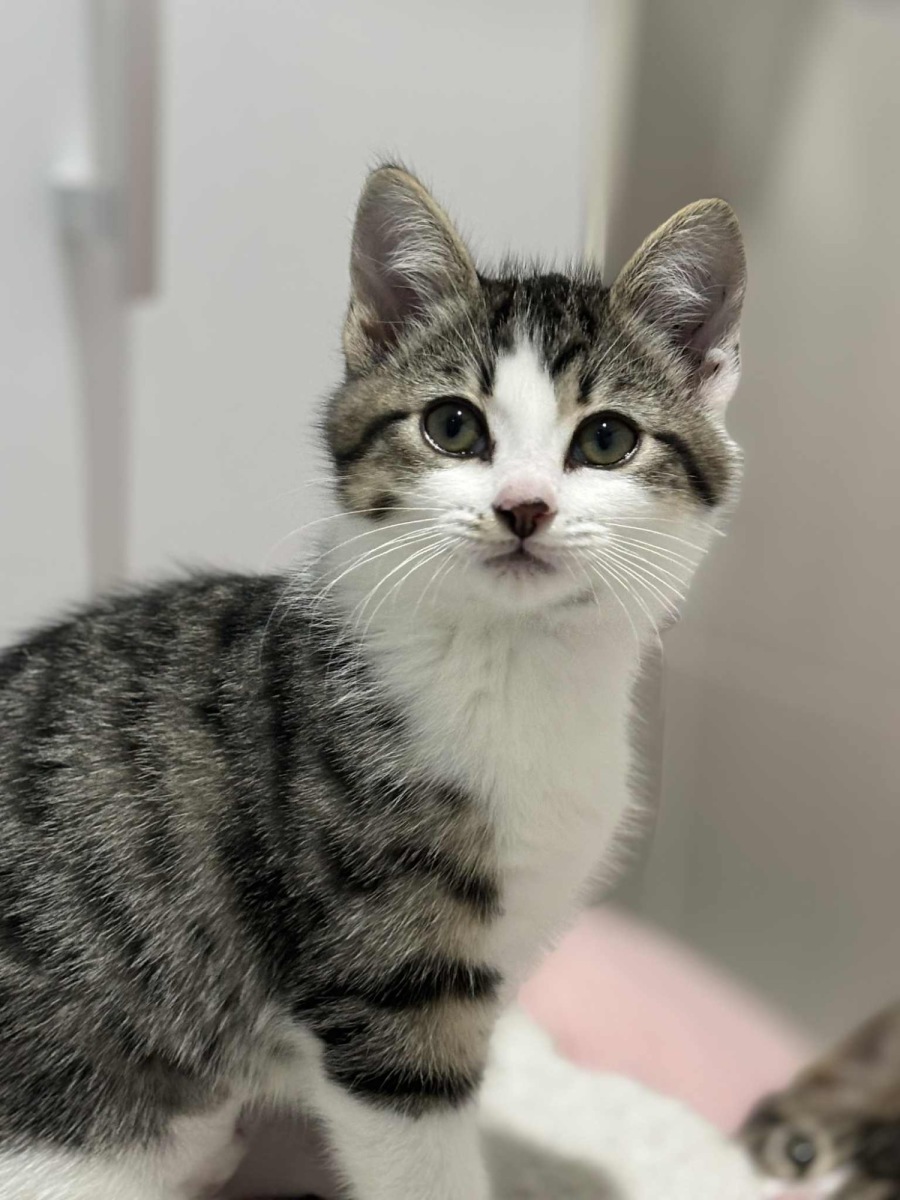 This dreamy little fluffball is the definition of heart-melter. With her soft white-and-grey fur and wide-eyed wonder, she adores curling up on your chest for quiet naps, gentle purrs rumbling like a lullaby. She’s gentle, patient, and always happy to let her more rambunctious siblings take the spotlight—until it’s cuddle time, when she steals every heart in the room.