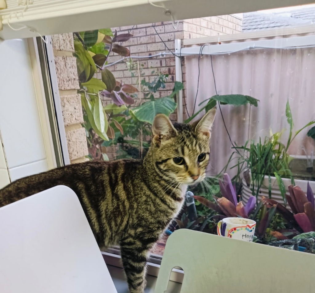 When she’s not soaking up all the love she can get, Rosalind enjoys lounging in her catio, basking in the sun like the queen she is. She’s the perfect mix of playful and relaxed – a companion who will make any house feel like home.