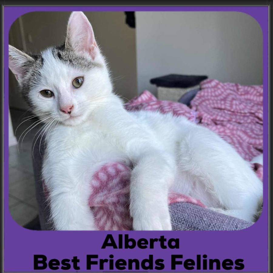 Given Alberta has a lot of energy, she would ideally like a kitty companion to play with and snuggle up with