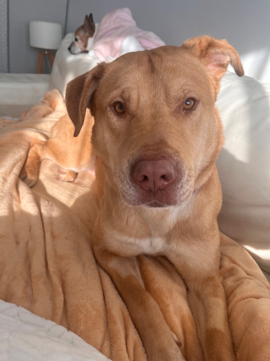 Whiskey is a desexed lab x staffy/ Sharpei mix - 2 yo he is an Affectionate loving and playful goofball..